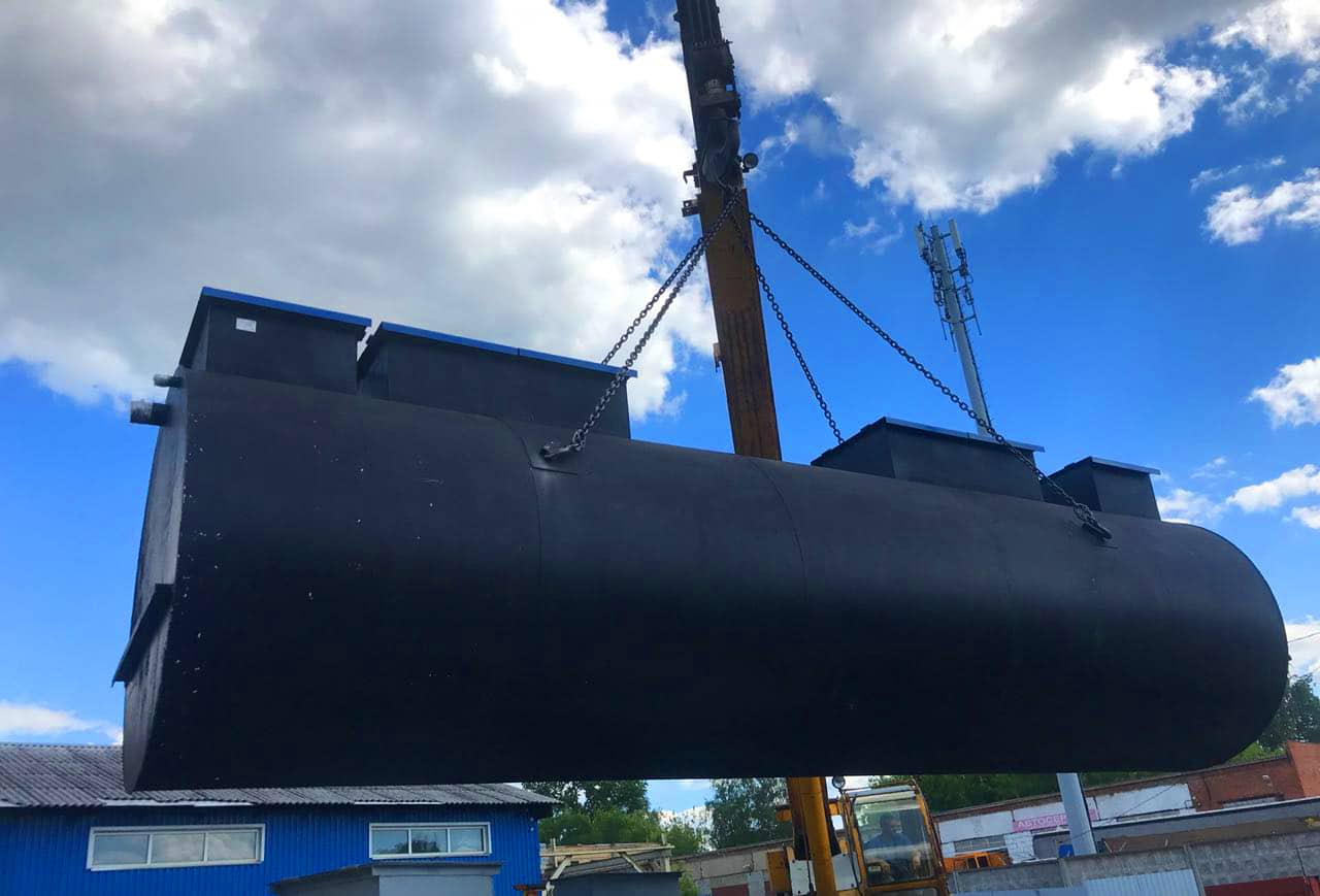 Габариты очистного сооружения: длина 7200 / диаметр 2400 / вес 4500 кг.